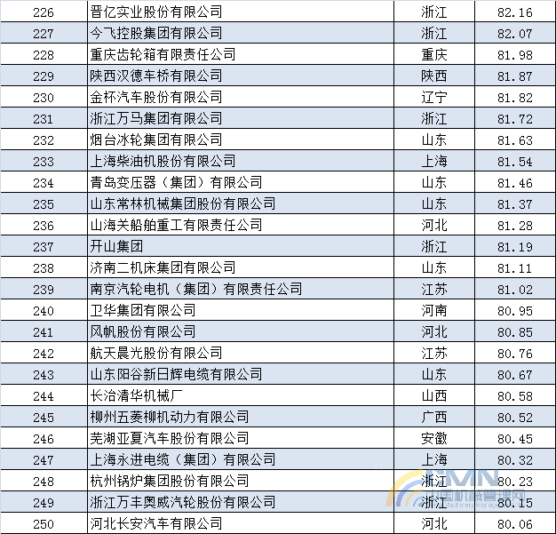 2013年中國(guó)機(jī)械500強(qiáng)排名