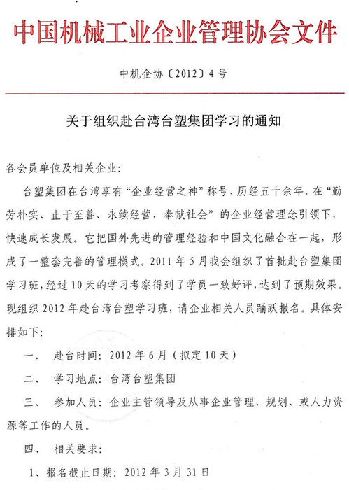 關(guān)于組織赴臺(tái)灣臺(tái)塑集團(tuán)學(xué)習(xí)的通知