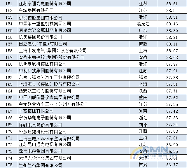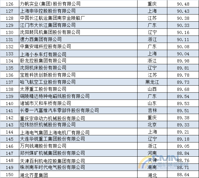 2014年中國機(jī)械500強(qiáng)排名