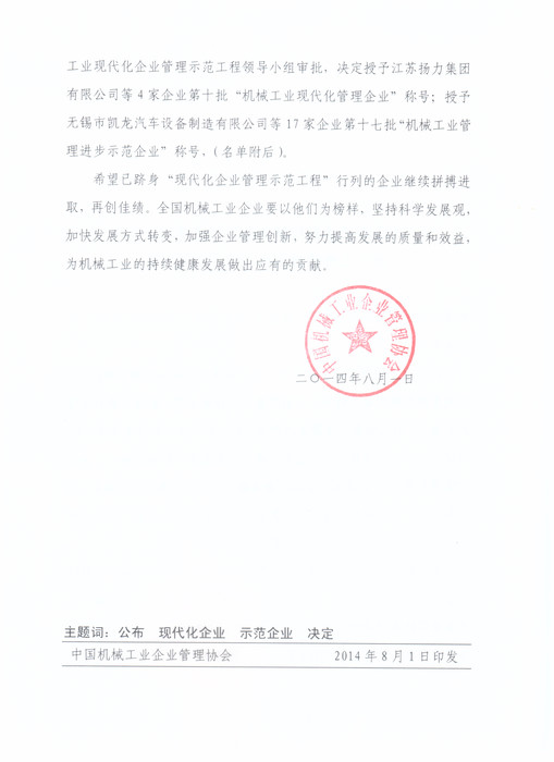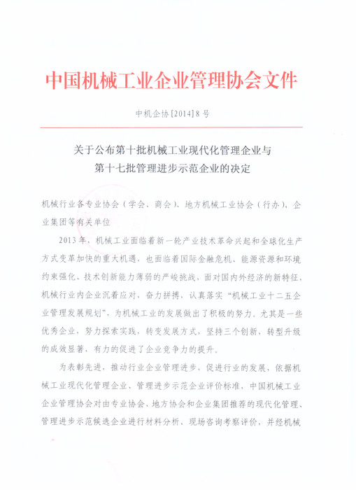 關(guān)于公布第十批機械工業(yè)現(xiàn)代化管理企業(yè)與第十七批管理進步示范企業(yè)的決定