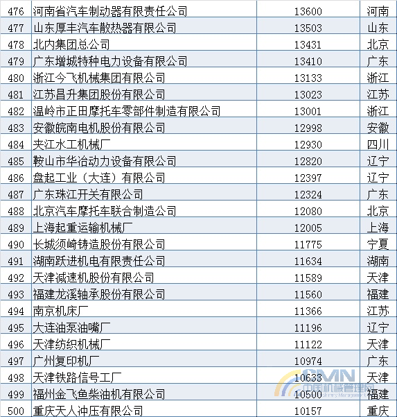 2003年中國(guó)機(jī)械500強(qiáng)排名