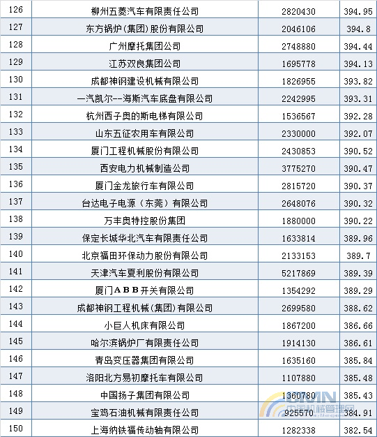 2004年中國(guó)機(jī)械500強(qiáng)排名(101-200)