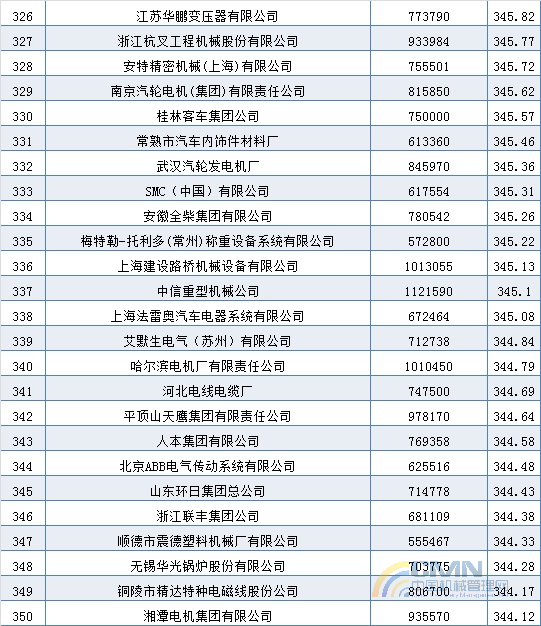 2004年中國(guó)機(jī)械500強(qiáng)排名(301-400)