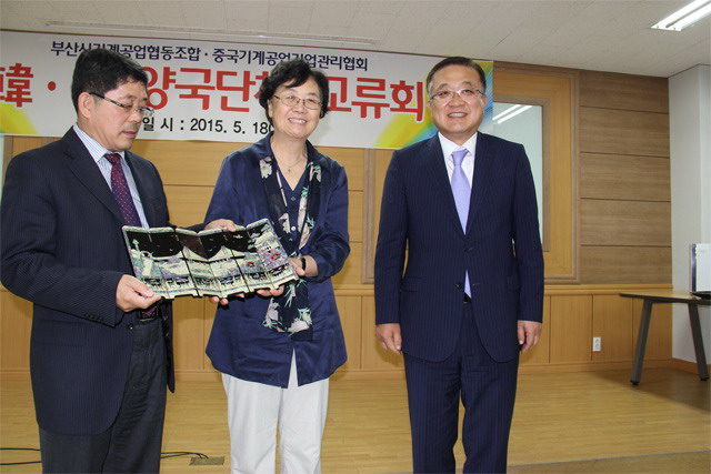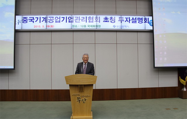 機械組合的發(fā)展和對外合作交流得到韓國釜山市政府的支持,在機械組合到訪北京時,釜山市政府行政次官等隨同參加中韓交流活動。此次去釜山,釜山市政府在2015年5月19日組織有關(guān)部門人員在政府大樓報告廳舉辦歡迎儀式,釜山市副市長趙敦榮會見了中機企協(xié)交流團成員。