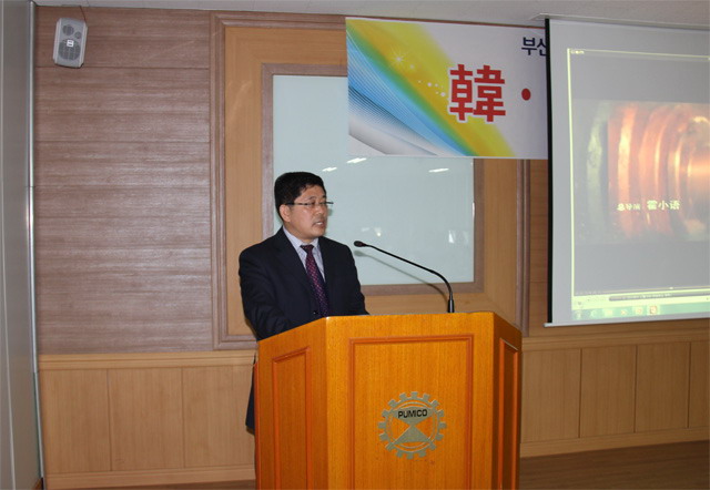 在致詞中歡迎中方企業(yè)家來韓合作交流,并介紹釜山的地理優(yōu)勢和制造業(yè)能力,他說釜山的機械產(chǎn)品產(chǎn)值占韓國整體機械工業(yè)55%,有7萬多家機械及相關(guān)企業(yè)在釜山及周邊地區(qū),是韓國機械和機械加工產(chǎn)業(yè)的最大集散地。強調(diào)中韓企業(yè)合作潛力巨大,中國市場前景廣闊,中國經(jīng)濟發(fā)展令世人羨慕,希望通過中韓兩國政府和行業(yè)組織的密切合作,促進兩國企業(yè)的快速發(fā)展。