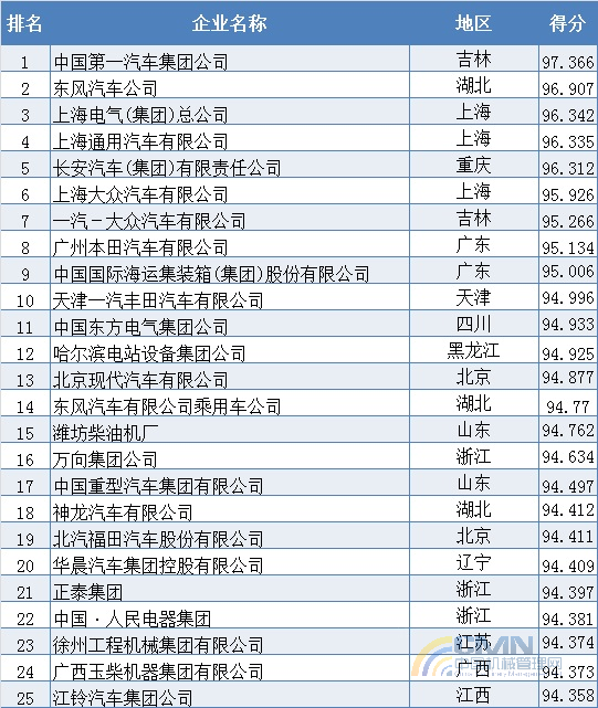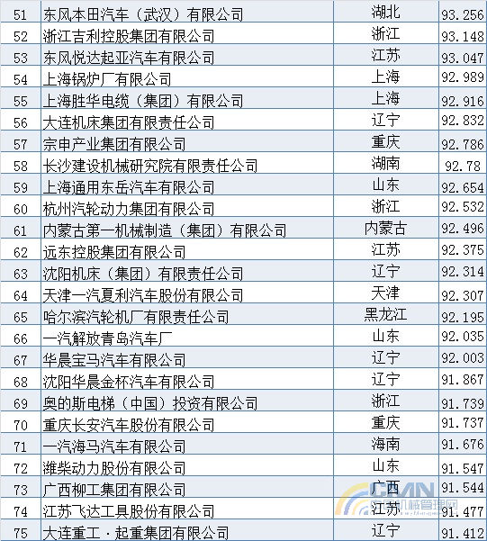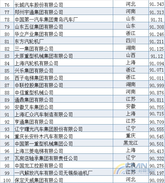 2007年中國機械500強排名(1-100)
