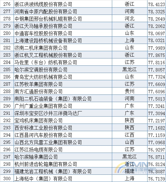 2008年中國機械500強排名(201-300)