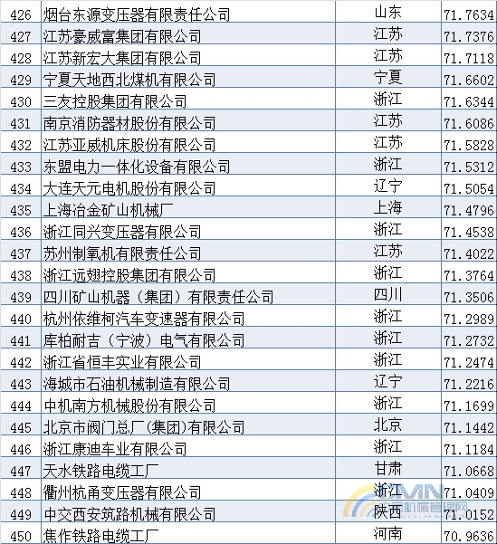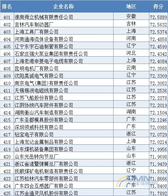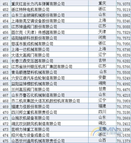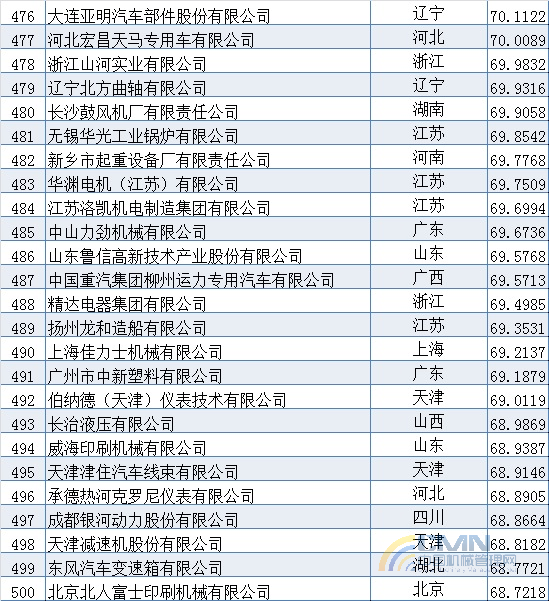 2009年中國機械500強排名(401-500)