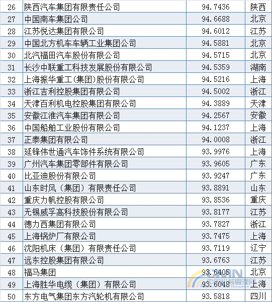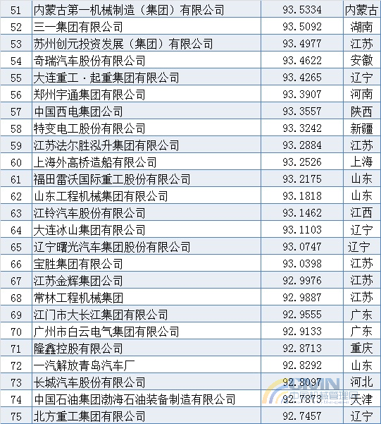 2010年中國(guó)機(jī)械500強(qiáng)排名(1-100)