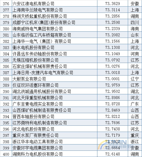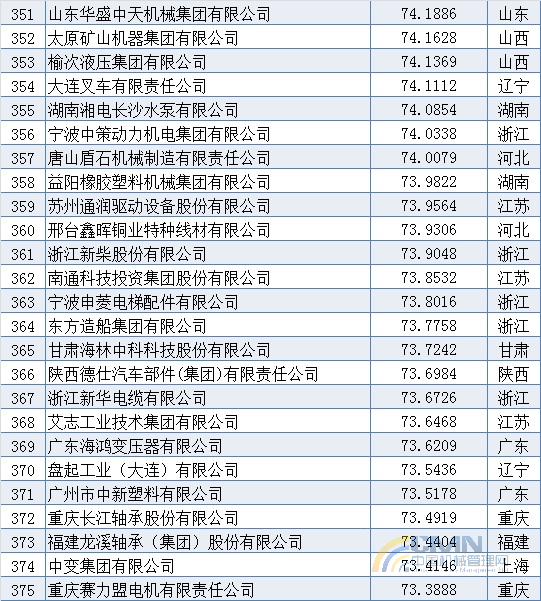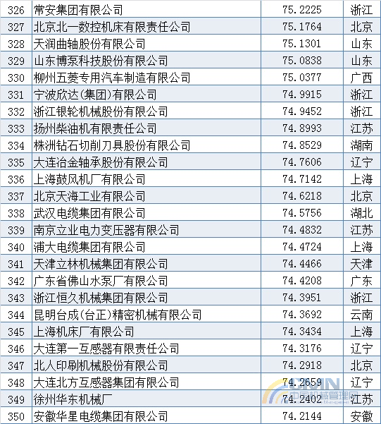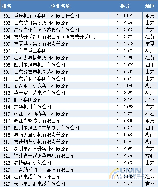 2010年中國(guó)機(jī)械500強(qiáng)排名(301-400)