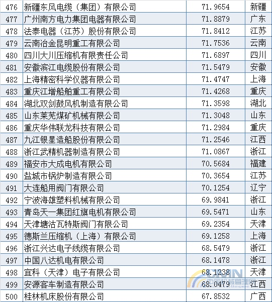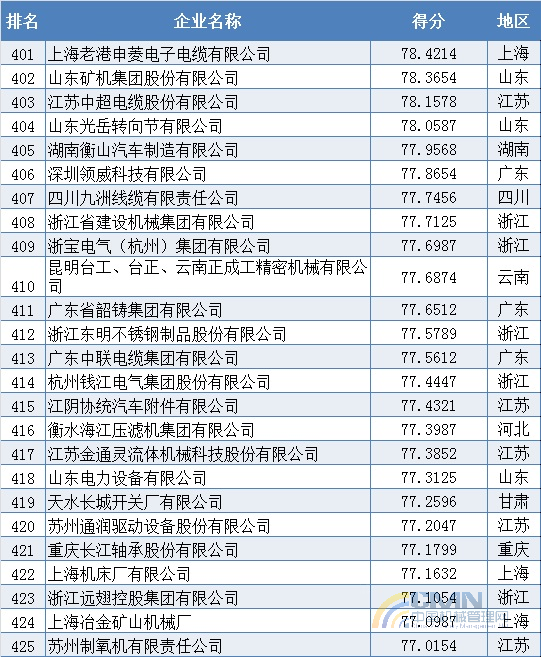 2011年中國機(jī)械500強(qiáng)排名(401-500)