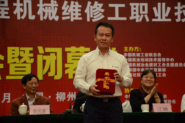 在全體參賽選手、裁判員和競賽工作人員的共同努力下,圓滿完成既定的各項議程,落下帷幕。10月30日上午召開技術(shù)總結(jié)會議和表彰大會暨閉幕式。出席表彰大會暨閉幕式的領(lǐng)導有:中國機械工業(yè)聯(lián)合會執(zhí)行副會長于清笈、廣西壯族自治區(qū)總工會副巡視員、競賽指導委員會副主任陳元滾、中國工程機械工業(yè)協(xié)會會長祁俊、廣西機械工業(yè)聯(lián)合會會長覃彥瑞、機械工業(yè)經(jīng)濟管理研究院院長、黨委書記、國務(wù)院發(fā)展研究中心研究員徐東華、機械工業(yè)職業(yè)技能鑒定指導中心執(zhí)行主任史仲光、中國工程機械工業(yè)協(xié)會副秘書長江琳、廣西壯族自治區(qū)總工會勞動保護部部長王志忠、廣西柳工集團有限公司黨委副書記、工會主席王相民、國家工程機械質(zhì)量監(jiān)督檢驗中心副主任雷曉衛(wèi)。表彰大會由徐東華院長主持。