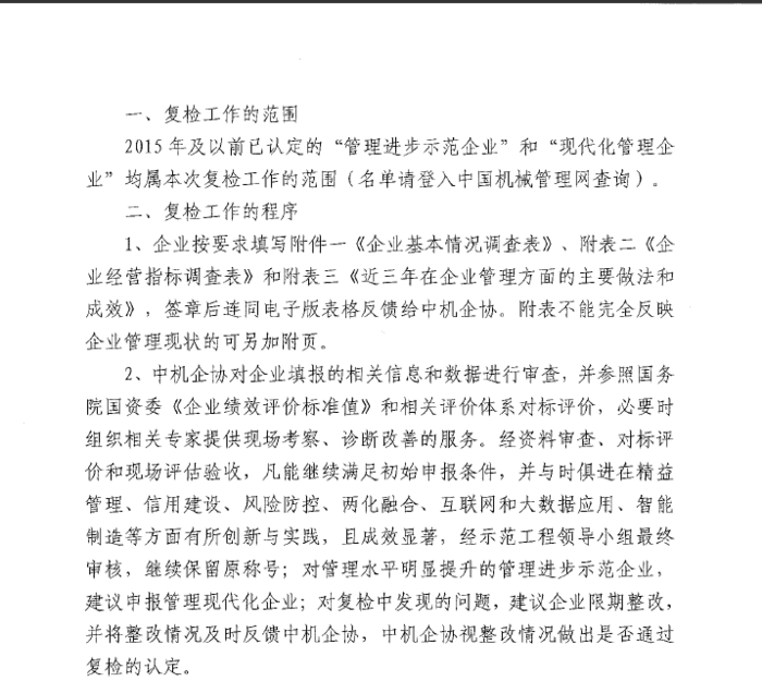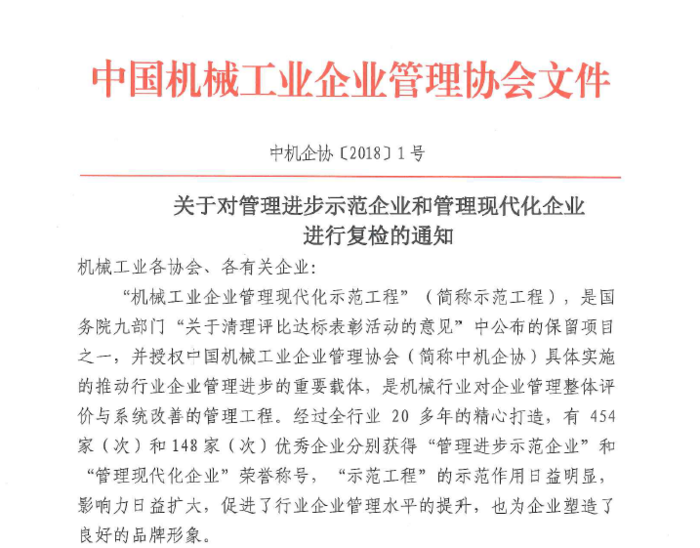關(guān)于對管理進(jìn)步示范企業(yè)和現(xiàn)代化管理企業(yè)進(jìn)行復(fù)檢的通知