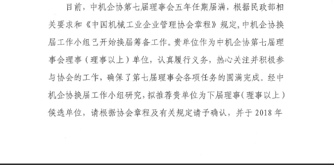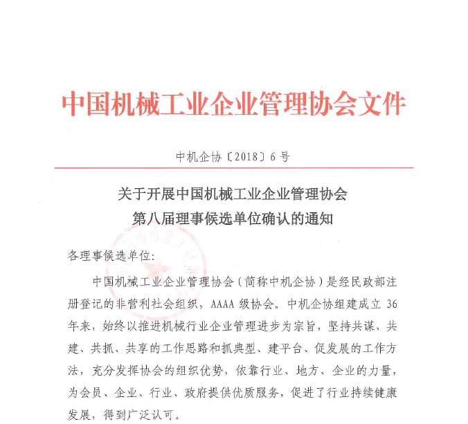 關于開展中國機械工業(yè)企業(yè)管理協(xié)會第八屆理事候選單位確認的通知