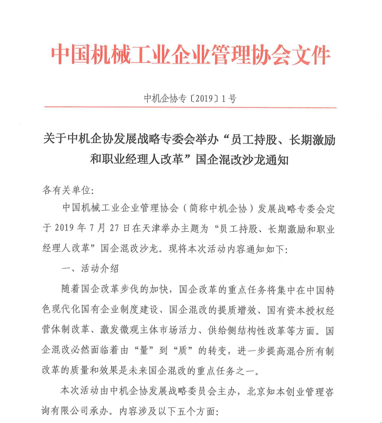 中機(jī)企協(xié)發(fā)展戰(zhàn)略專委會(huì)舉辦國(guó)企混改沙龍的通知