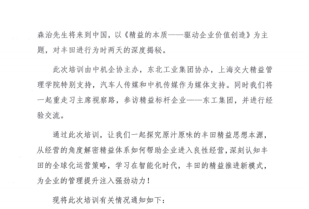 關(guān)于舉辦《精益的本質(zhì)——驅(qū)動企業(yè)價值創(chuàng)造》高端培訓(xùn)的通知
