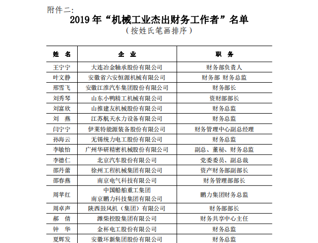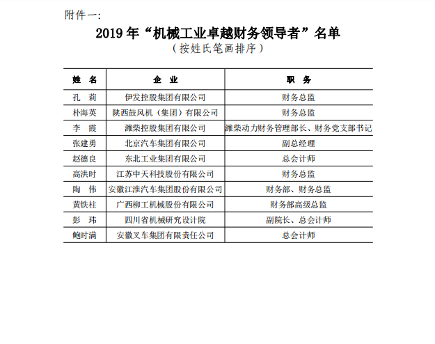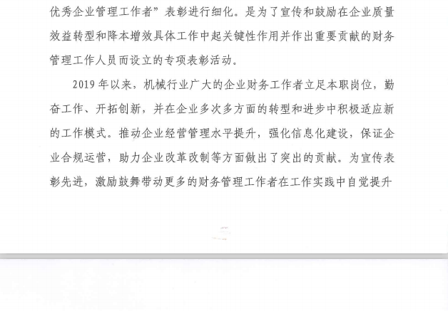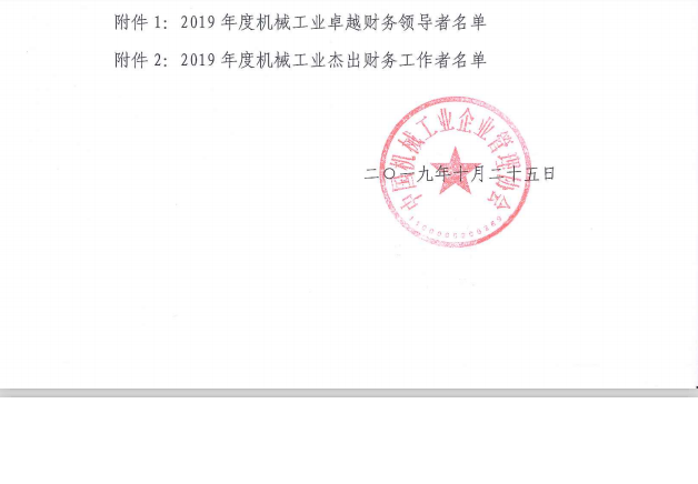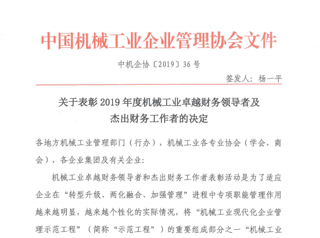 關(guān)于表彰2019年度機(jī)械工業(yè)卓越財(cái)務(wù)領(lǐng)導(dǎo)者及杰出財(cái)務(wù)工作者的決定
