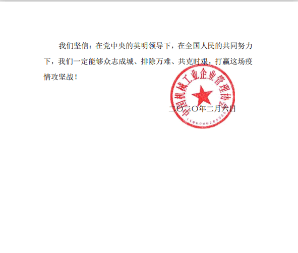 中機(jī)聯(lián)倡議書:堅(jiān)定信心 攻堅(jiān)克難 打贏疫情防控人民戰(zhàn)爭