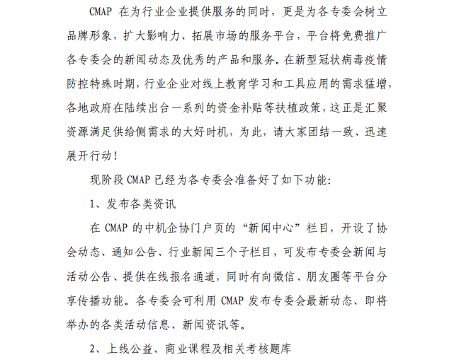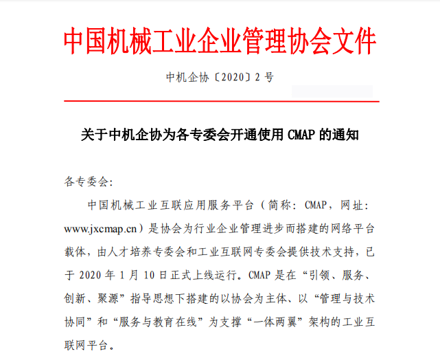 關(guān)于中機企協(xié)為各專委會開通使用 CMAP 的通知