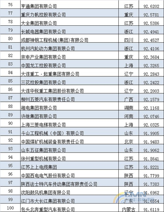 2012年中國(guó)機(jī)械500強(qiáng)排名(1-100)