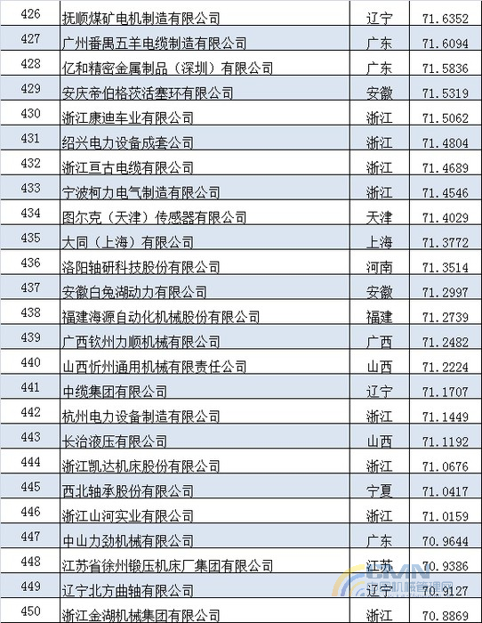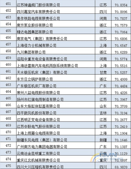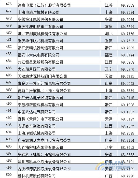 2012年中國(guó)機(jī)械500強(qiáng)排名(401-500)